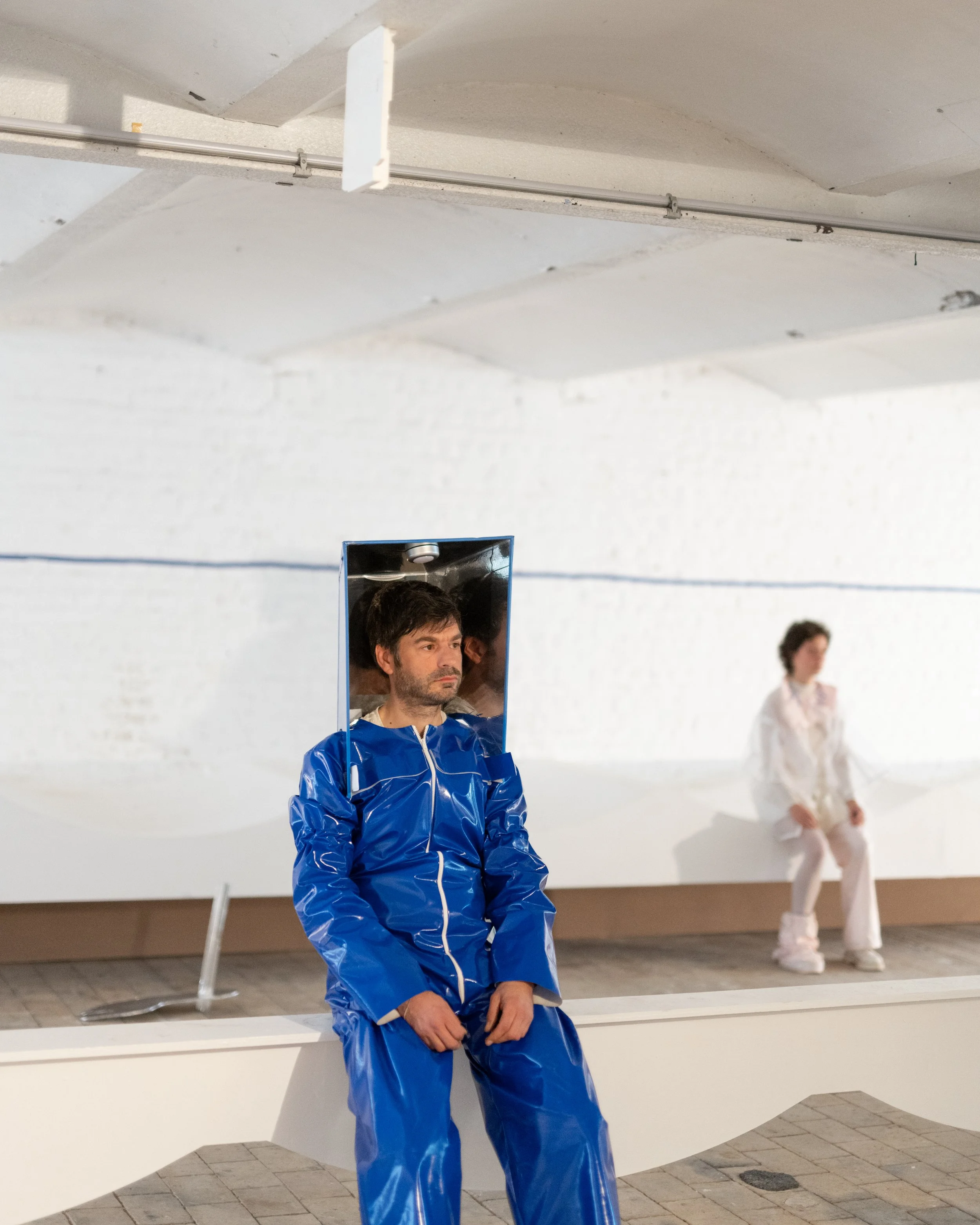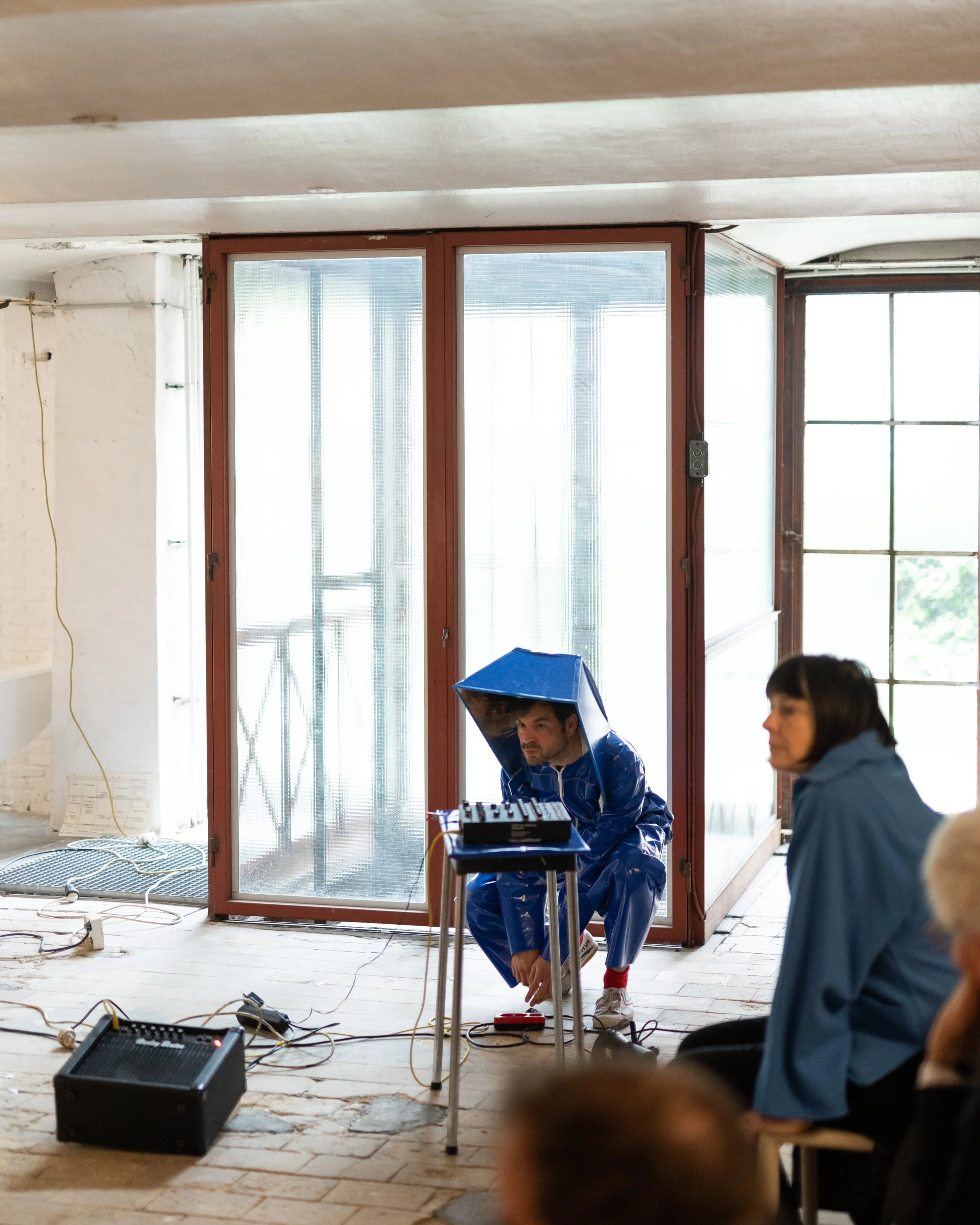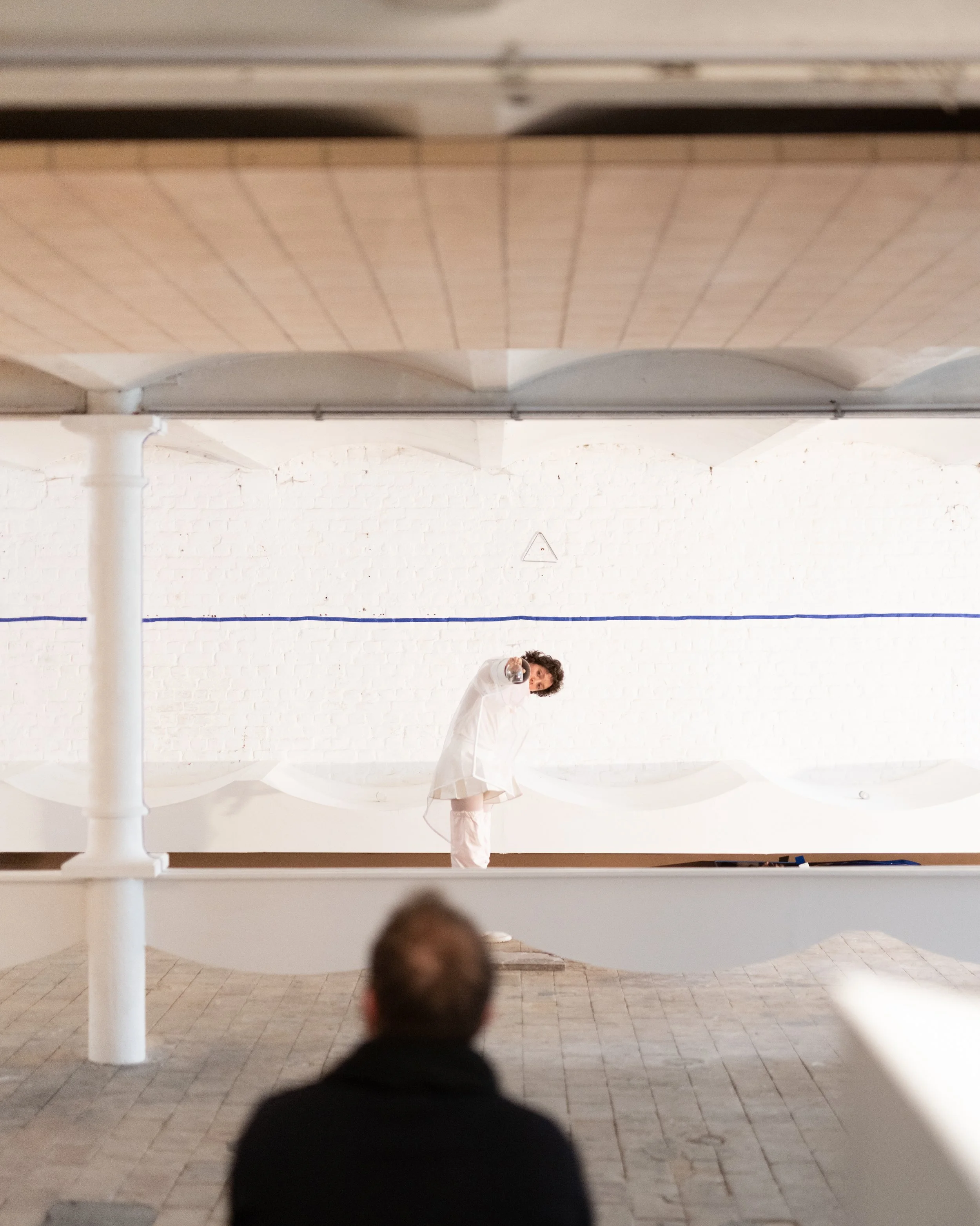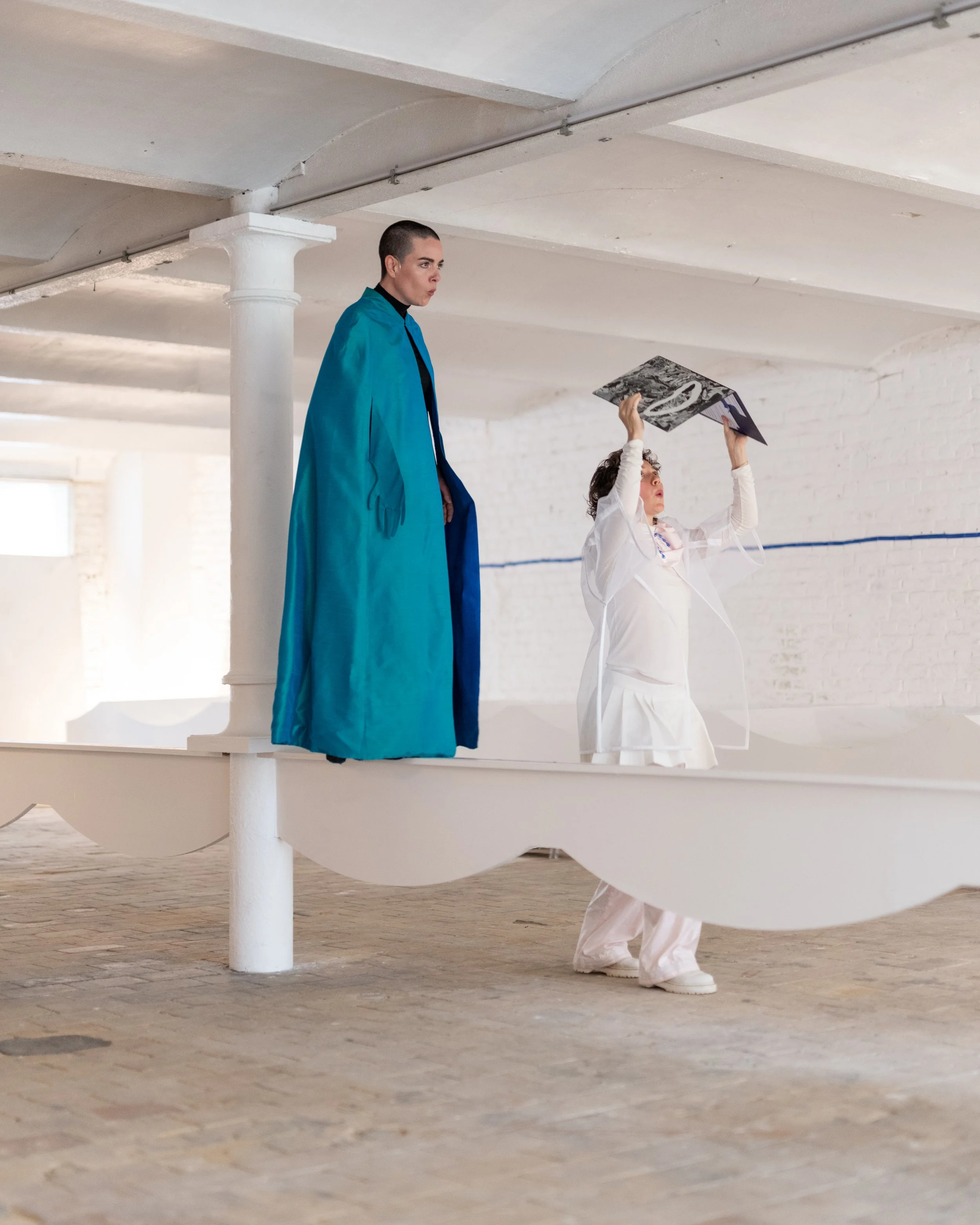 The performance is a part-improvised, part-rehearsed activation of the characters within the physical and conceptual space of the set, presented over a 90-minute period at L’Escaut for the Art Brussels OFF Programme on 28 April 2024.