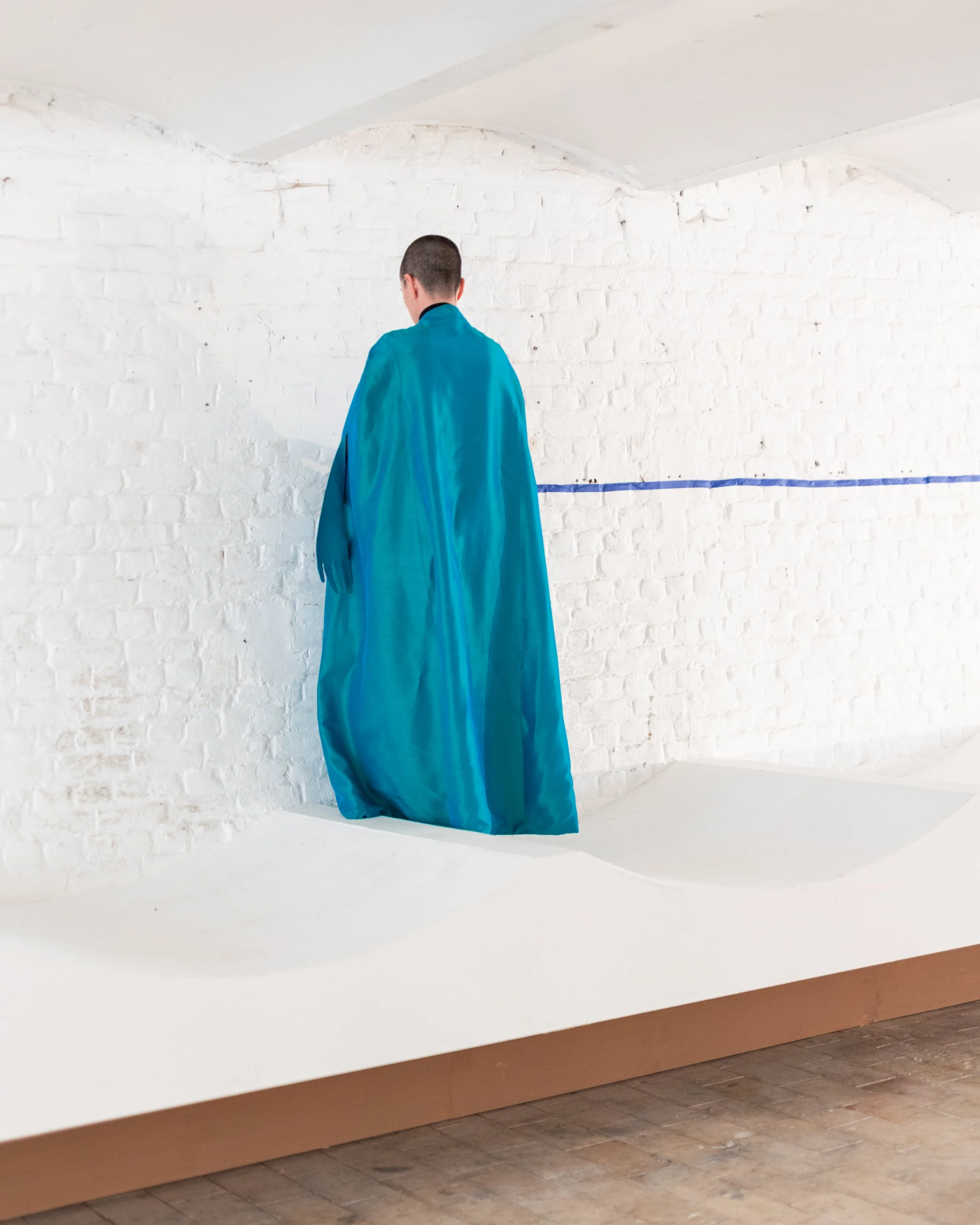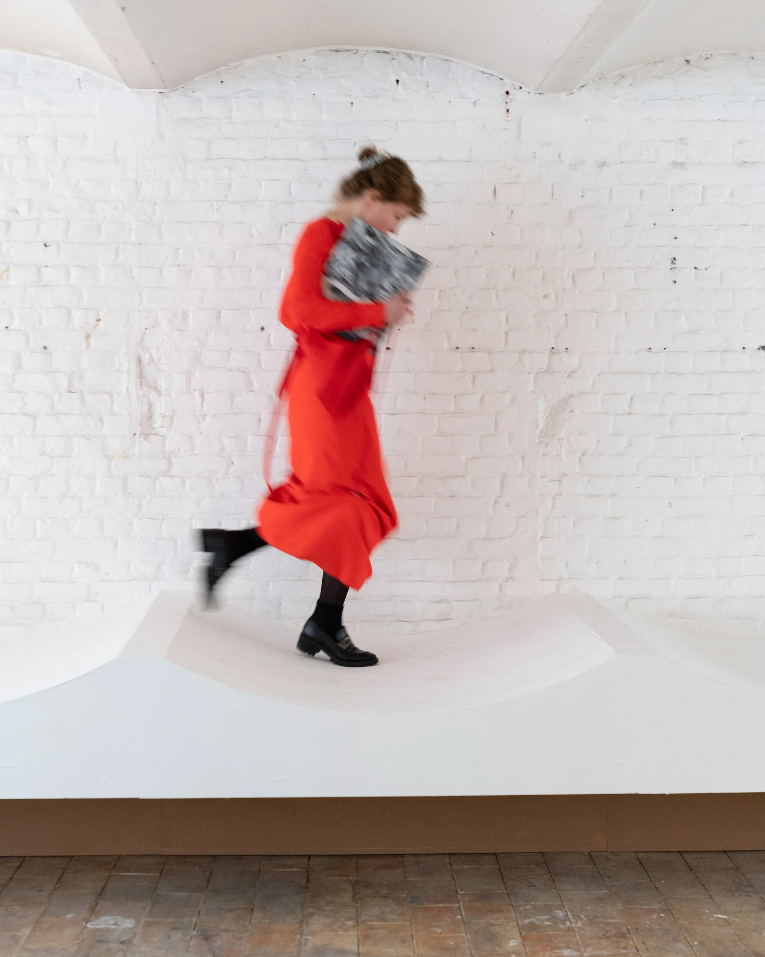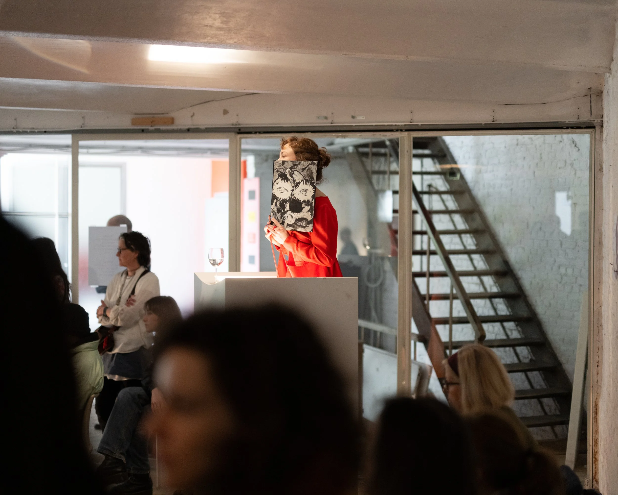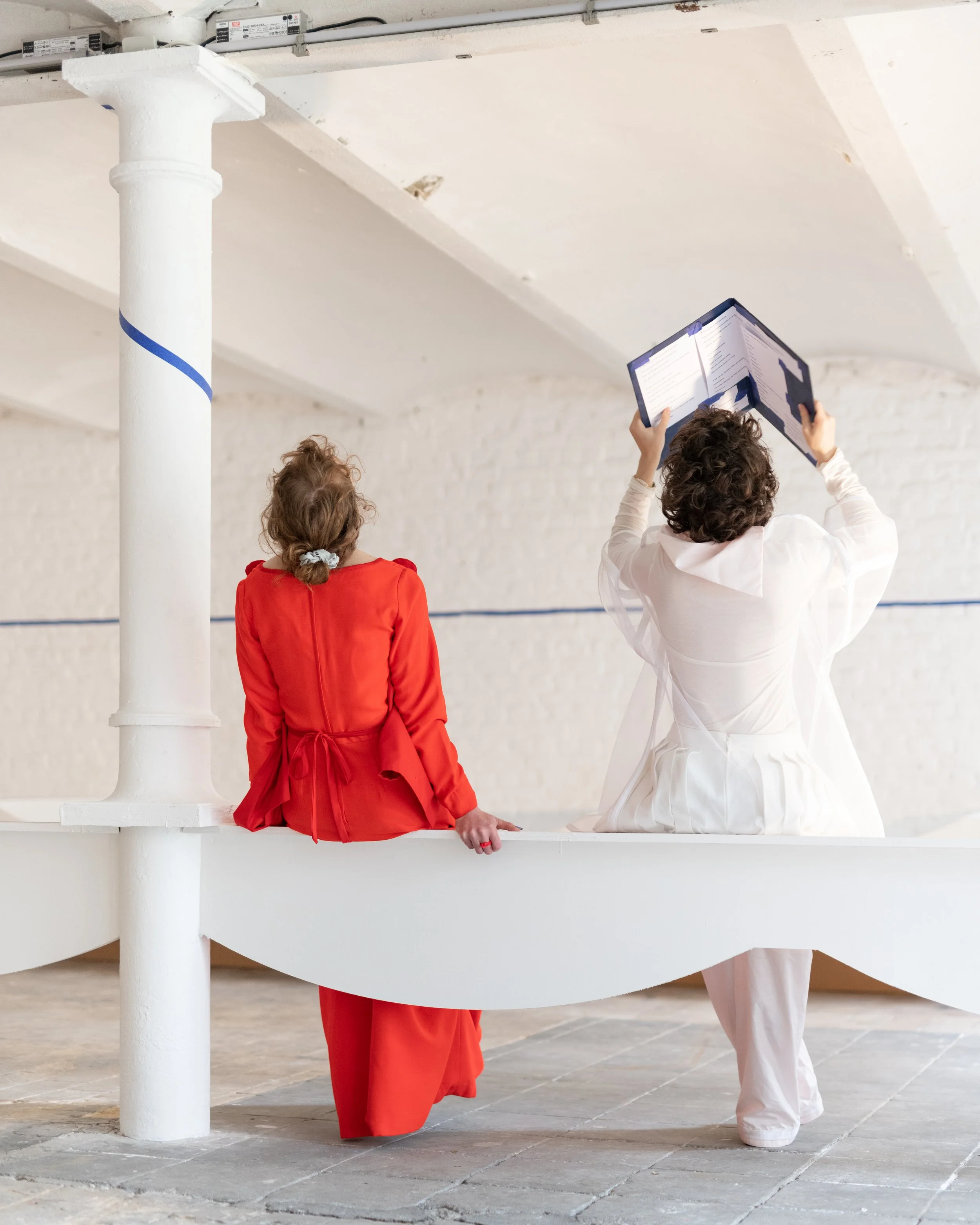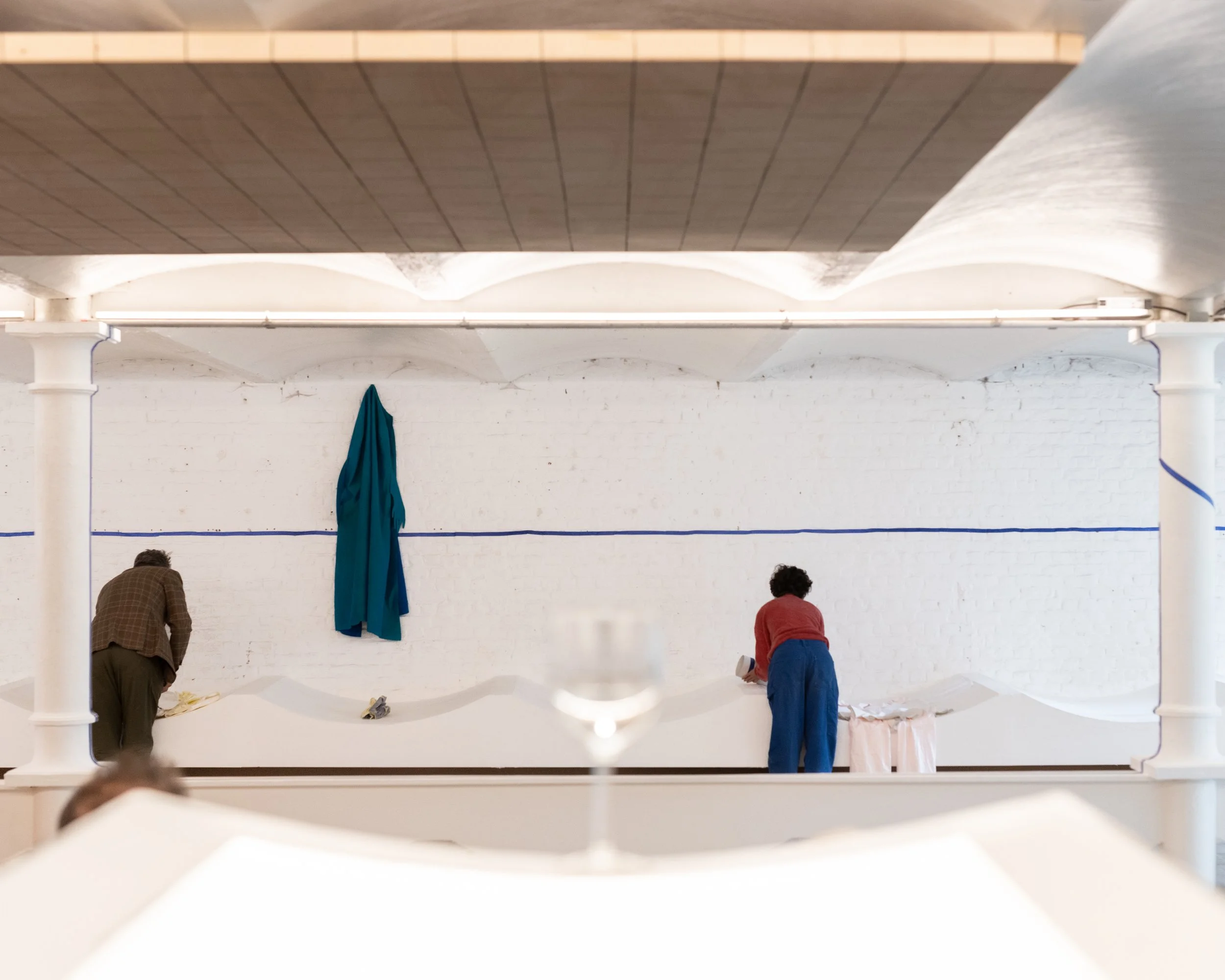 The performance is a part-improvised, part-rehearsed activation of the characters within the physical and conceptual space of the set, presented over a 90-minute period at L’Escaut for the Art Brussels OFF Programme on 28 April 2024.