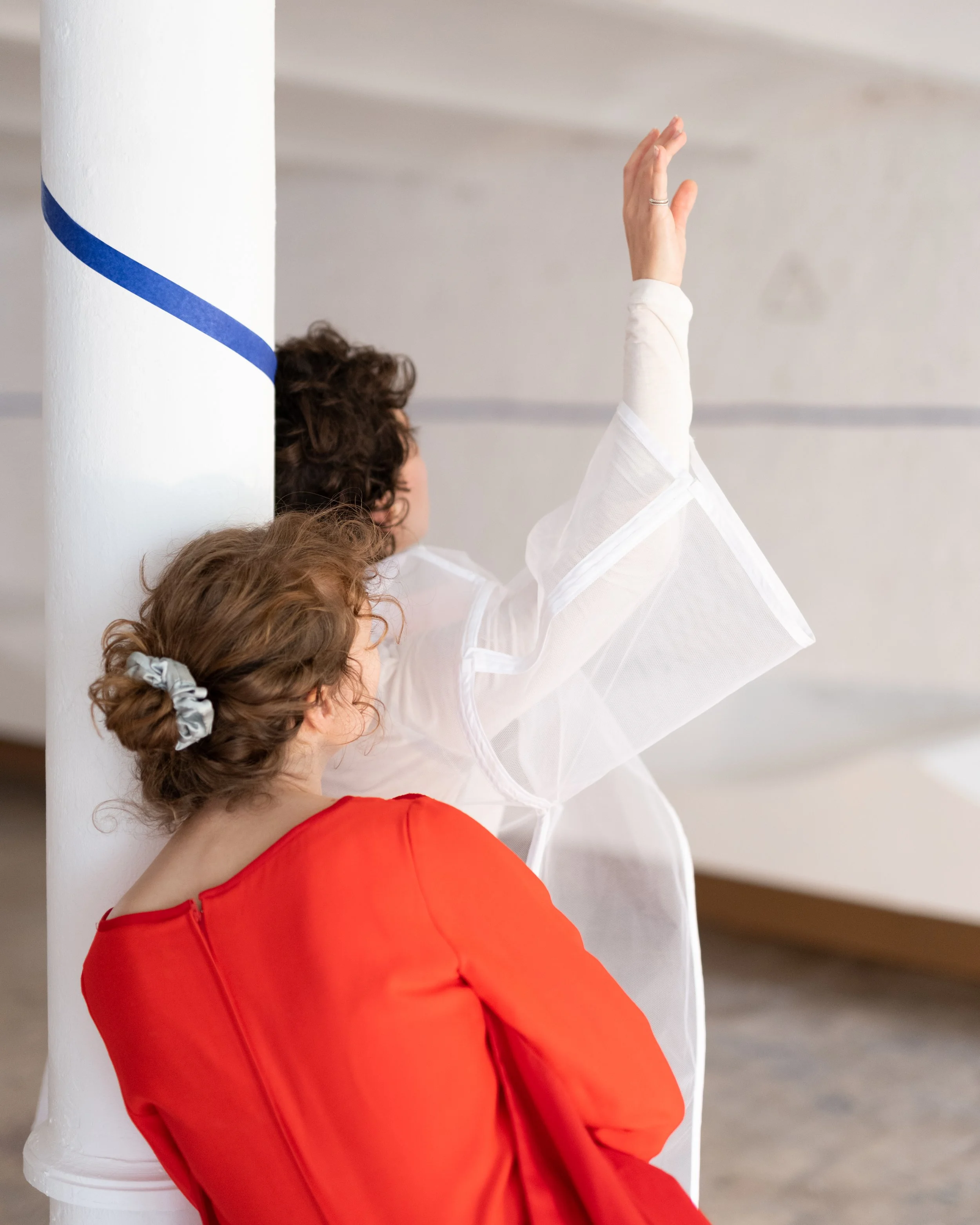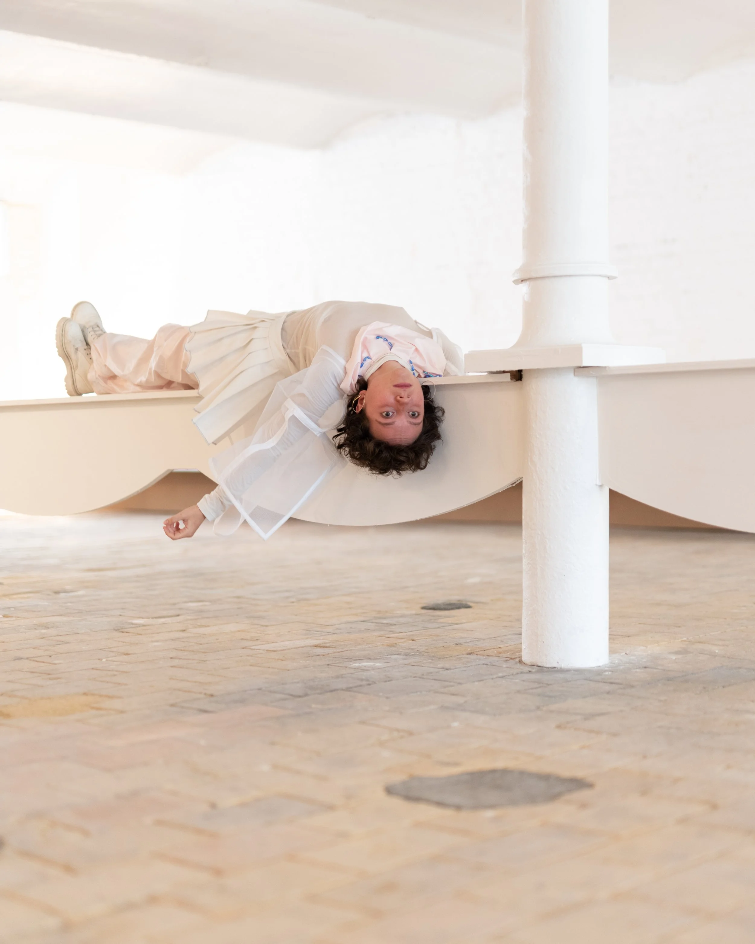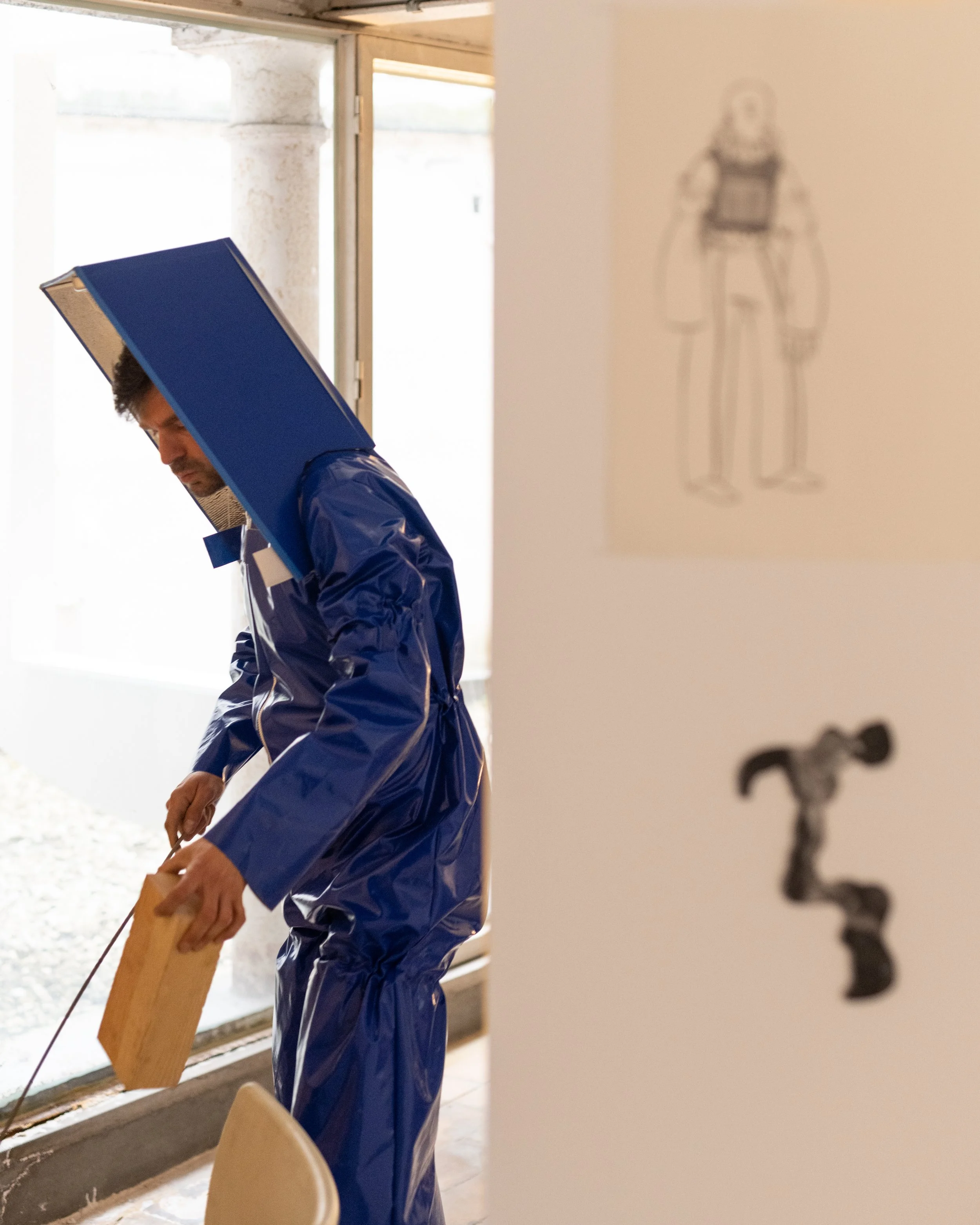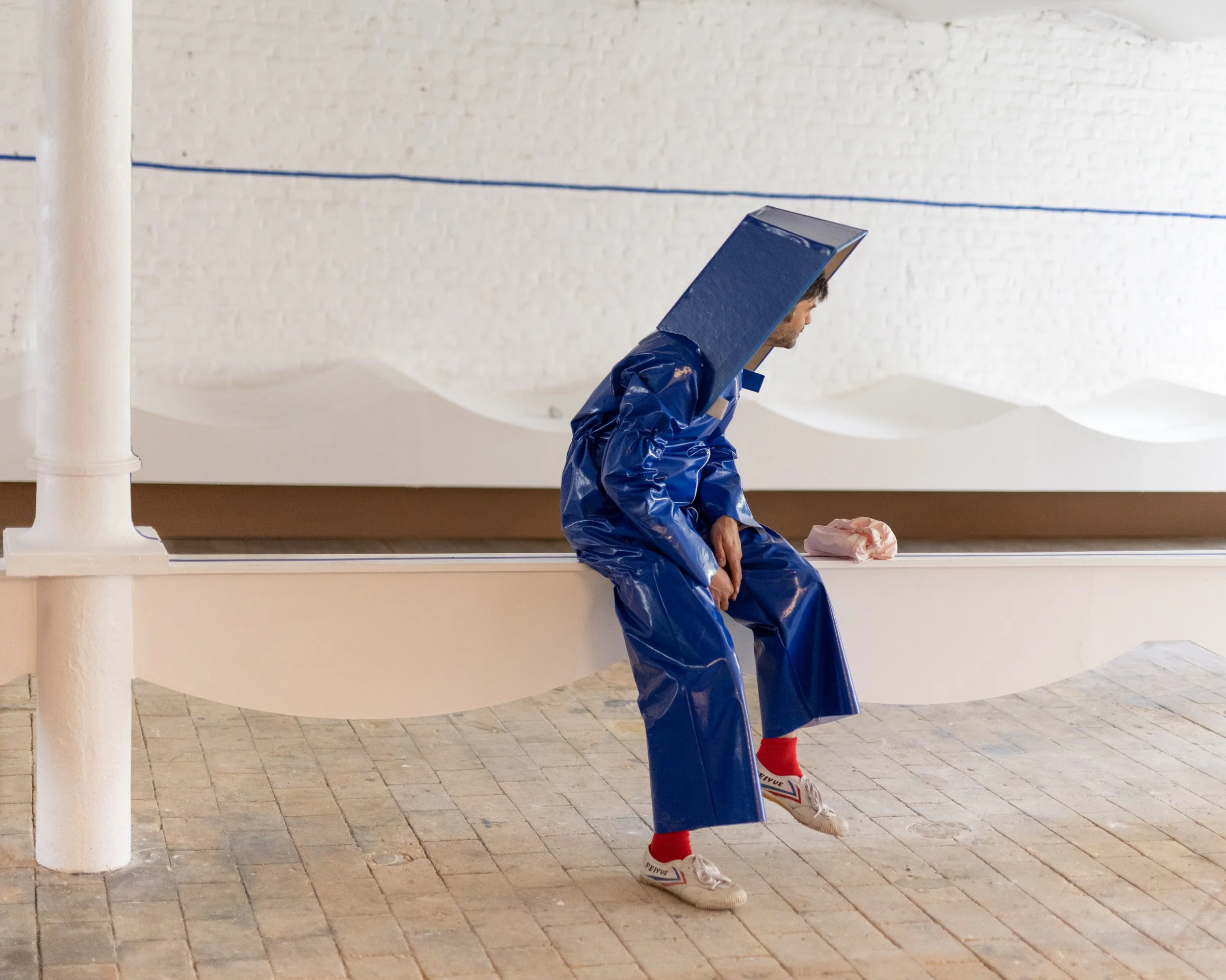 The performance is a part-improvised, part-rehearsed activation of the characters within the physical and conceptual space of the set, presented over a 90-minute period at L’Escaut for the Art Brussels OFF Programme on 28 April 2024.