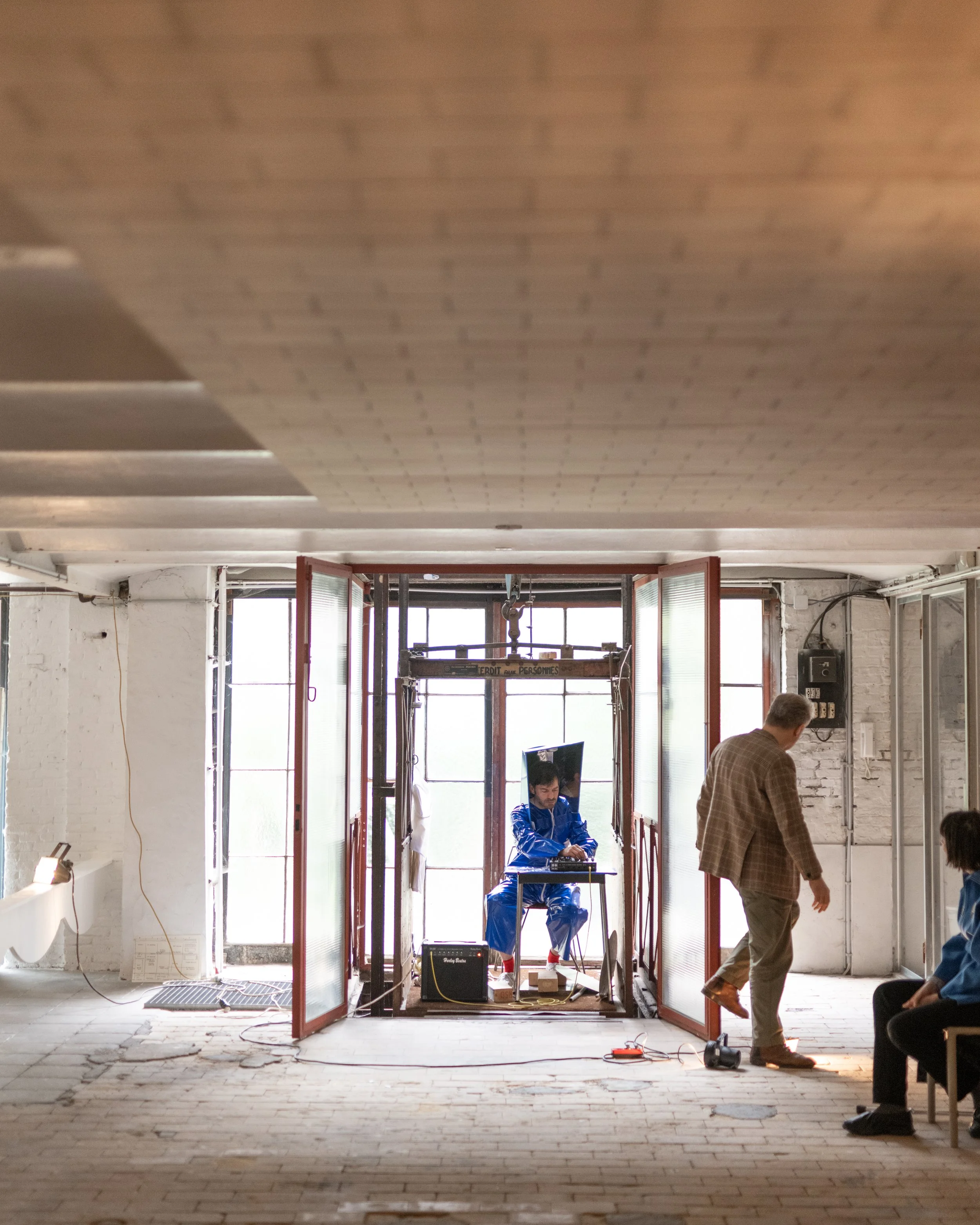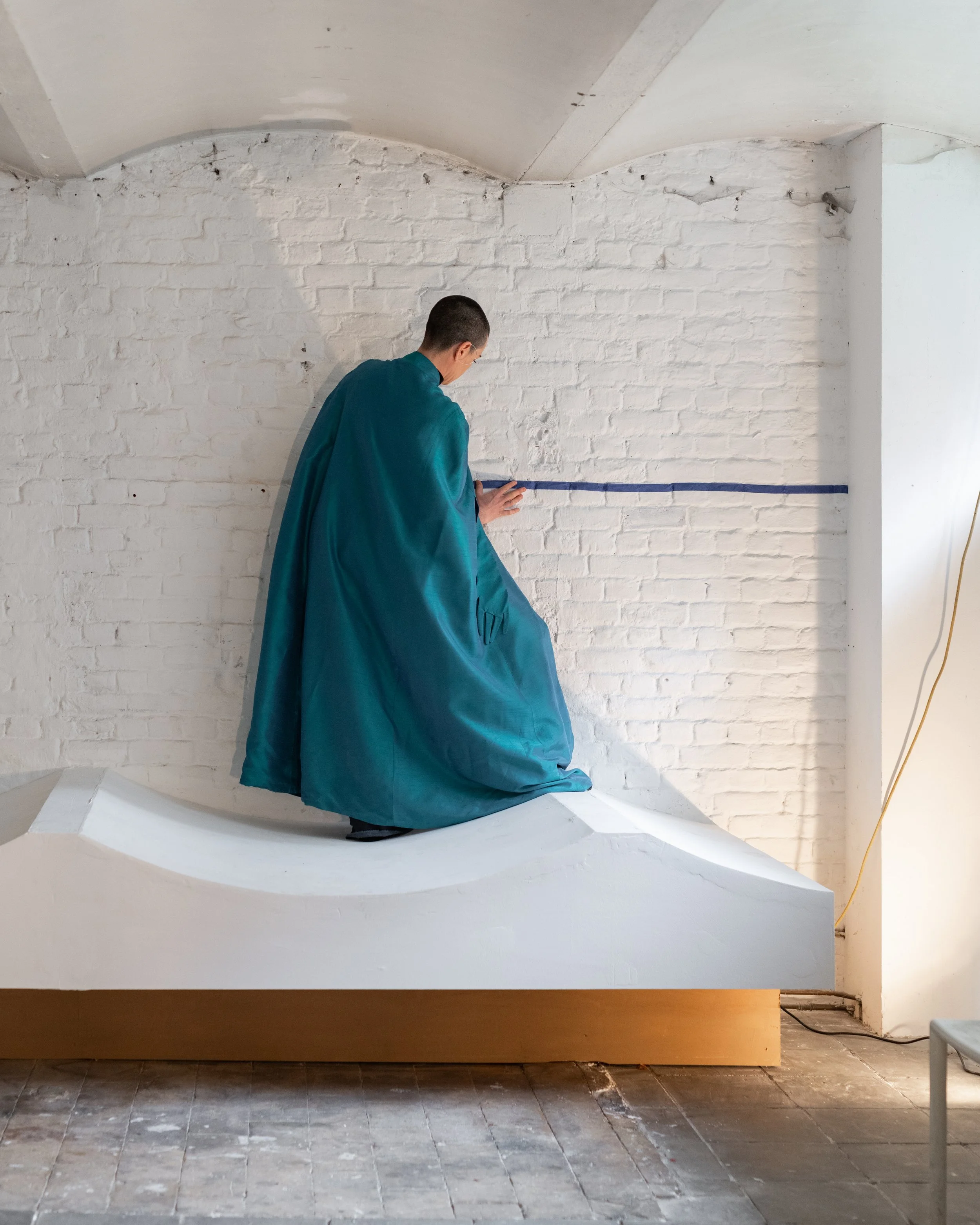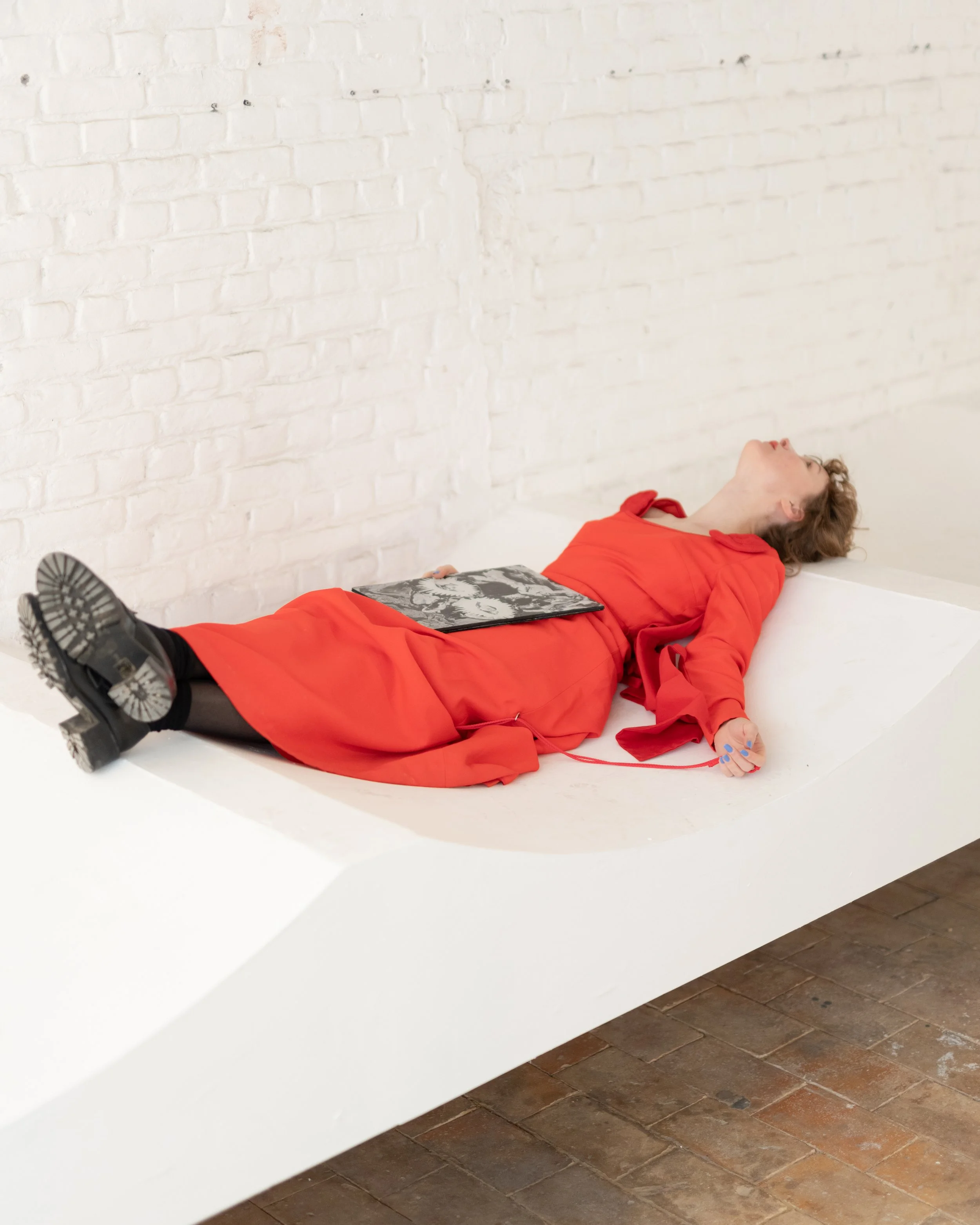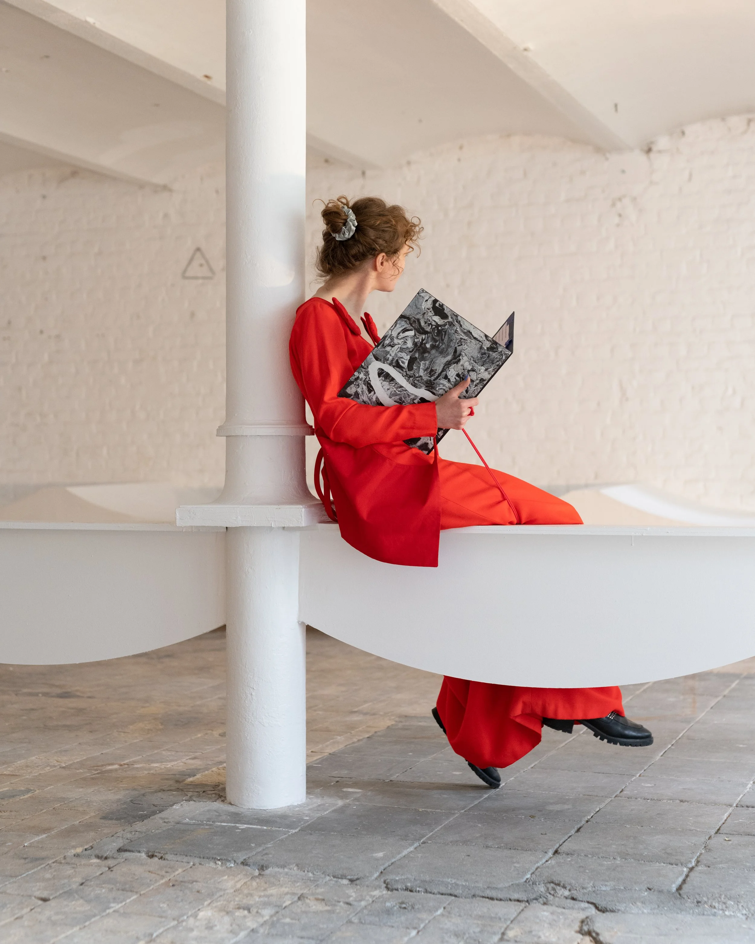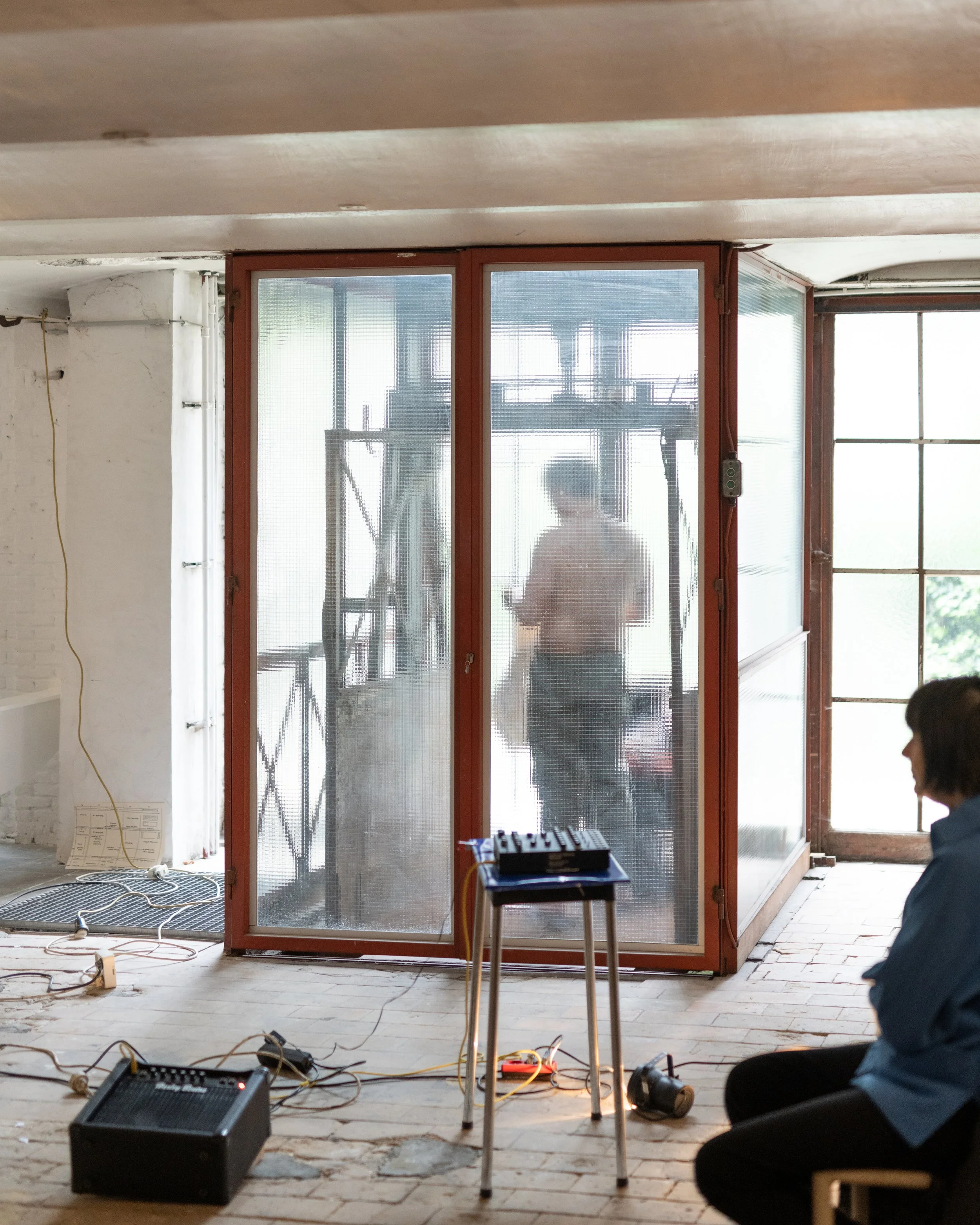 The performance is a part-improvised, part-rehearsed activation of the characters within the physical and conceptual space of the set, presented over a 90-minute period at L’Escaut for the Art Brussels OFF Programme on 28 April 2024.